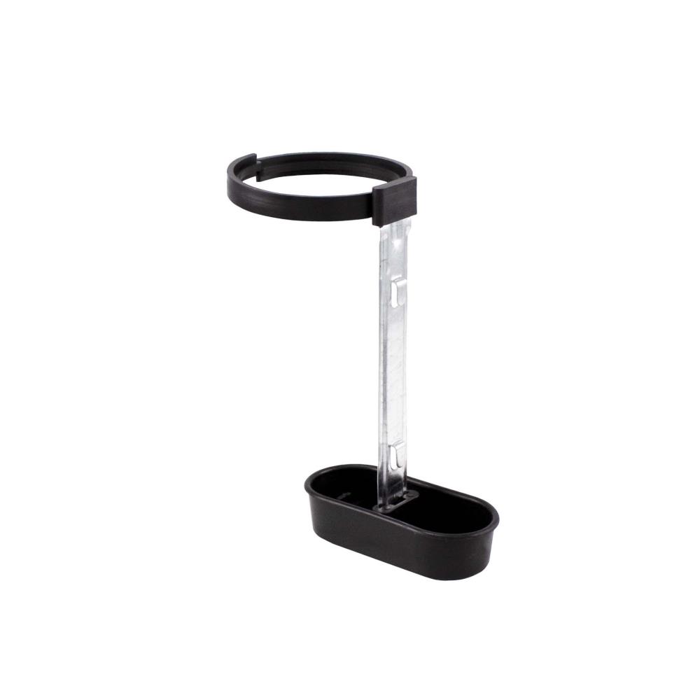 Caractéristiques : 100% plastique et tôle galvanisée. Système de fixation universel pour bouteilles en plastique. Deux crochets d'attache sur la tige verticale. Coupelle intégrée. Largeur : 195mm. Hauteur : 230 mm.