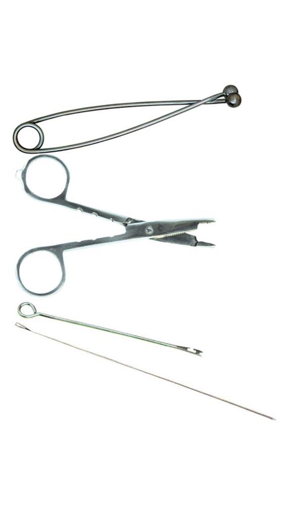 Ce kit contient : 1 Baillon à boule, 1 Pince, 1 Dégorgeoire métal et 1 Aiguille à locher 18cm.