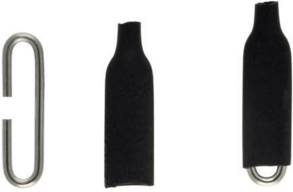 Agrafes munies d’une gaine thermorétractable noire. Ultra pratiques pour changer de montages ou de plombs en quelques secondes
