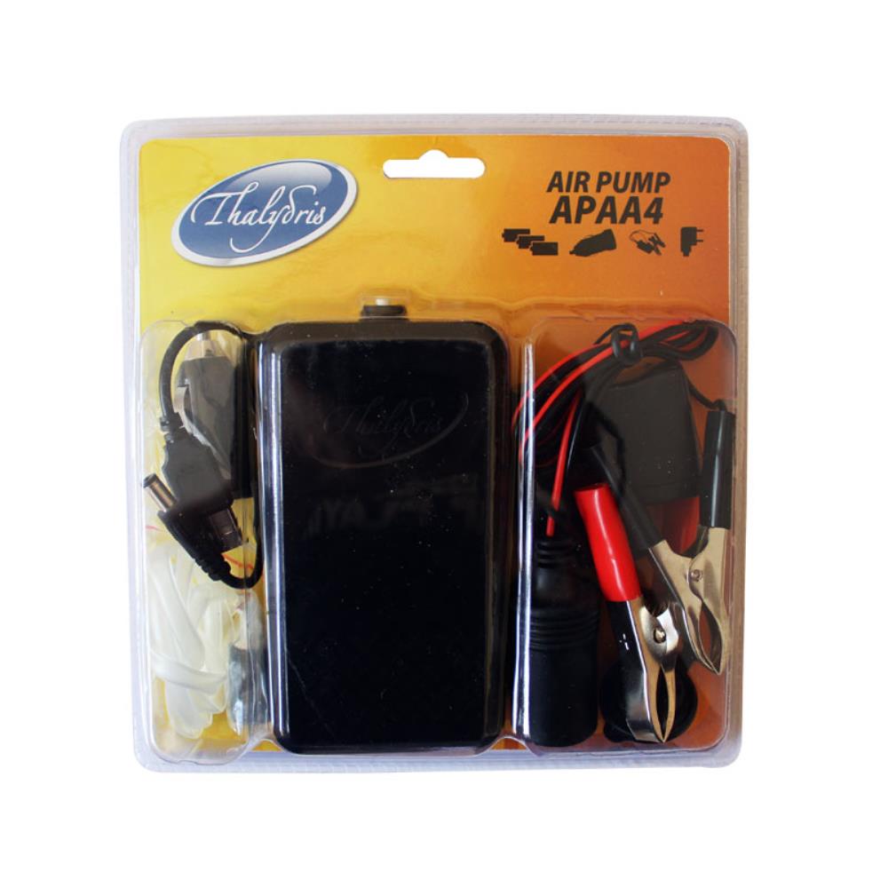 Aérateur pouvant être alimenté de 4 façons différentes : avec piles, sur allume-cigare, avec charge batterie et avec les pinces.