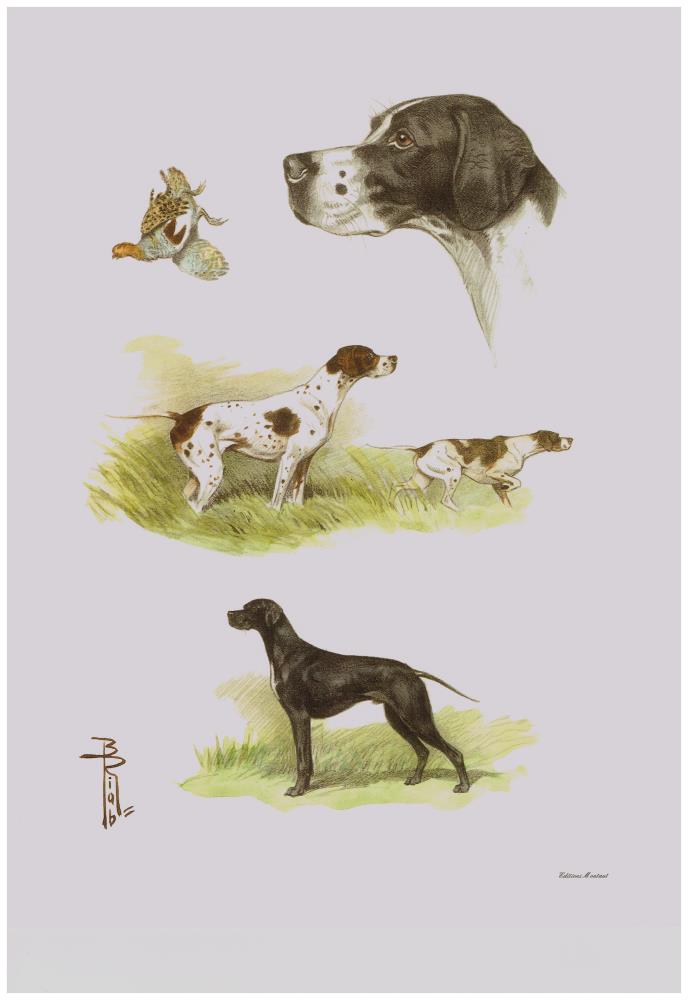 Affiche étude de pointer. Reproduction d'après l'œuvre originale de Boris RIAB, aquarelliste de talent (1998- 1975).Lire la suite