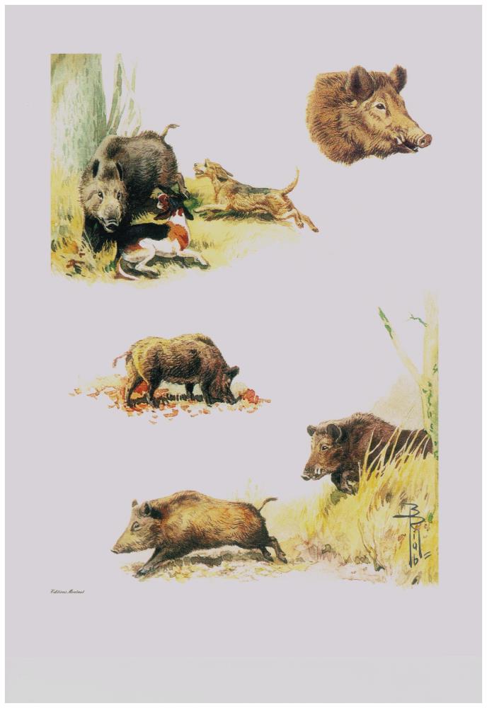 Affiche étude de sanglier. Reproduction d'après l'œuvre originale de Boris RIAB, aquarelliste de talent (1998- 1975).