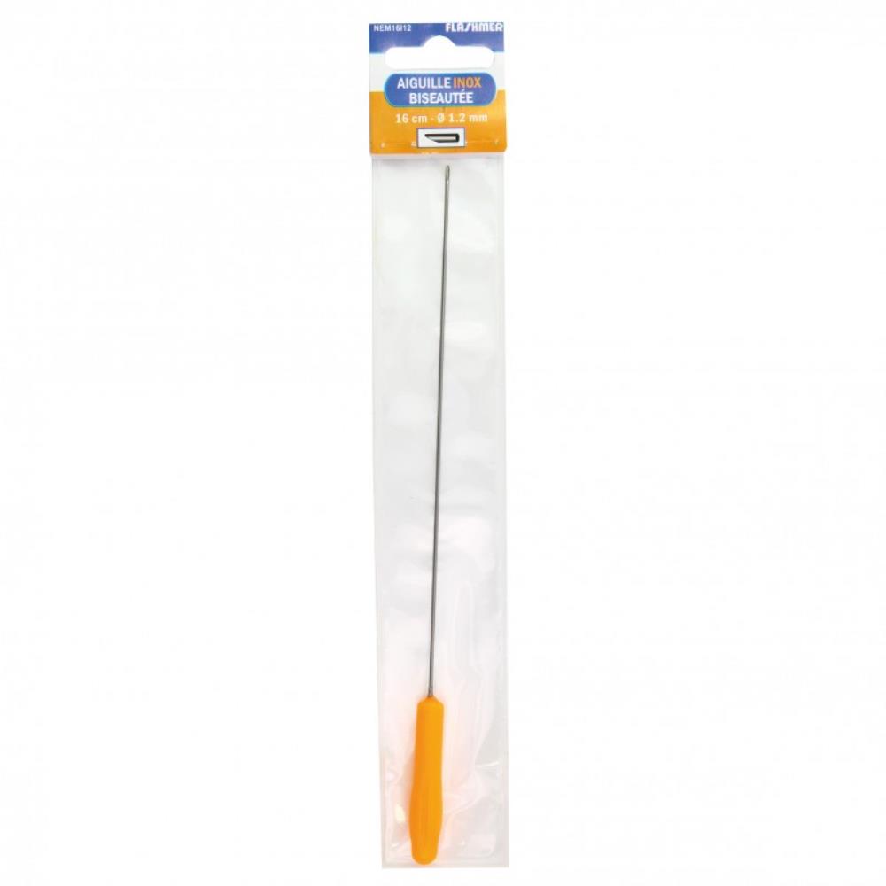 Aiguille à ver en inox Flashmer. Très pratique pour enfiler les vers sur vos montages afin de garantir une bonne tenue de votre appâts sur votre bas de ligne. La pointe biseautée facilitera l'opération.