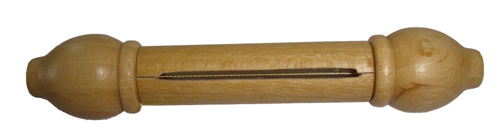 Appeau en bois pour chouette chevêche. Tenir l'appau des 2 mains et souffler vivement dans la fente de petits coups secs et répétés.