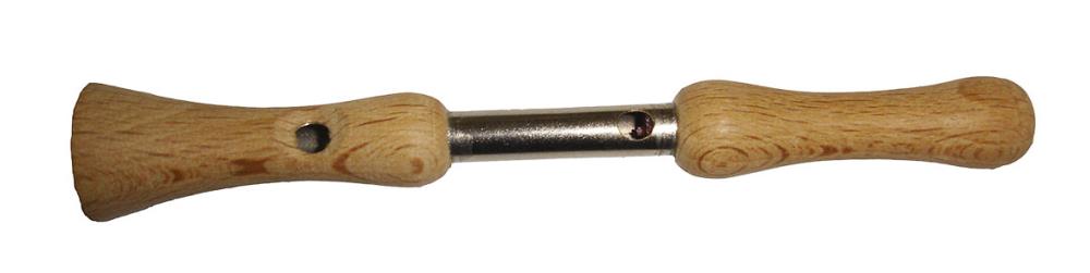 Appeau en bois pour mésange charbonnière. Prononcer un "tiu" en bouchant le second trou de l'appeau avec l'index après le "i" puis reproduire l'opération plus rapidement "tiu-tiuuu-tiu".