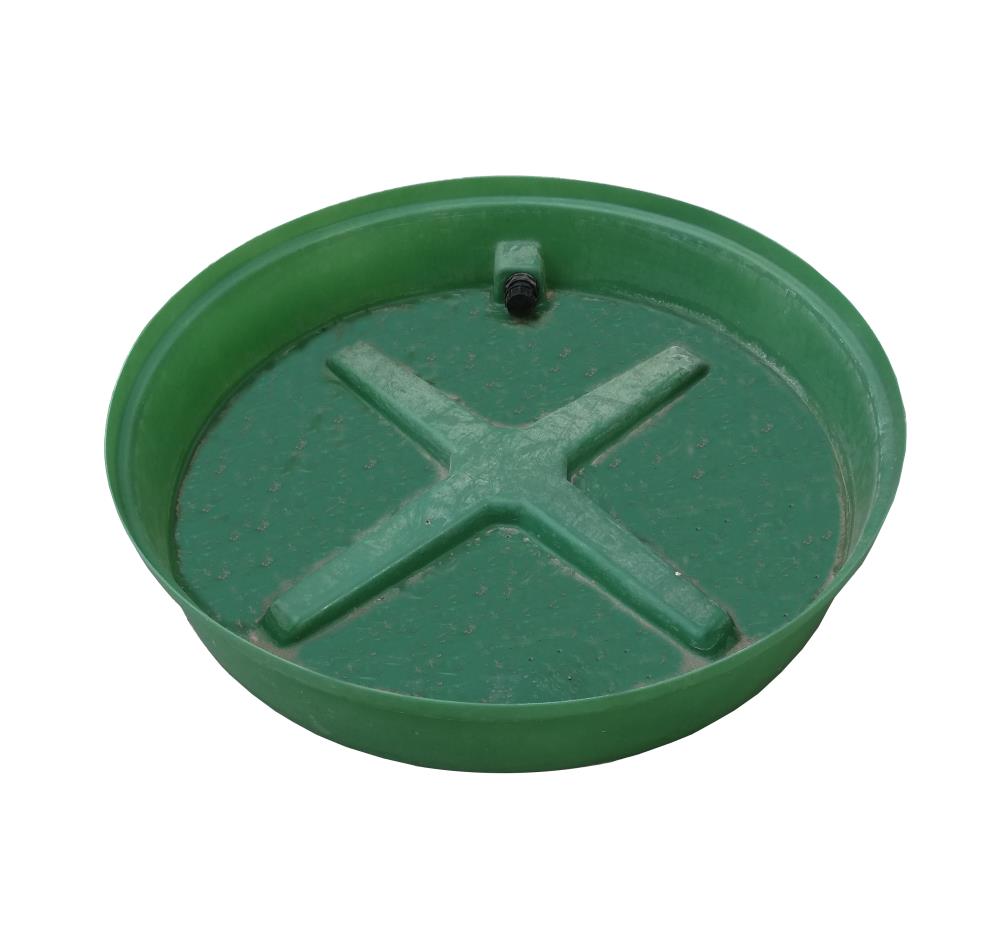 Matière : résine de polyéthylène. Diamètre : environ 1,3 m. Hauteur : envrion : 20 cm. Contenance : 80 l.