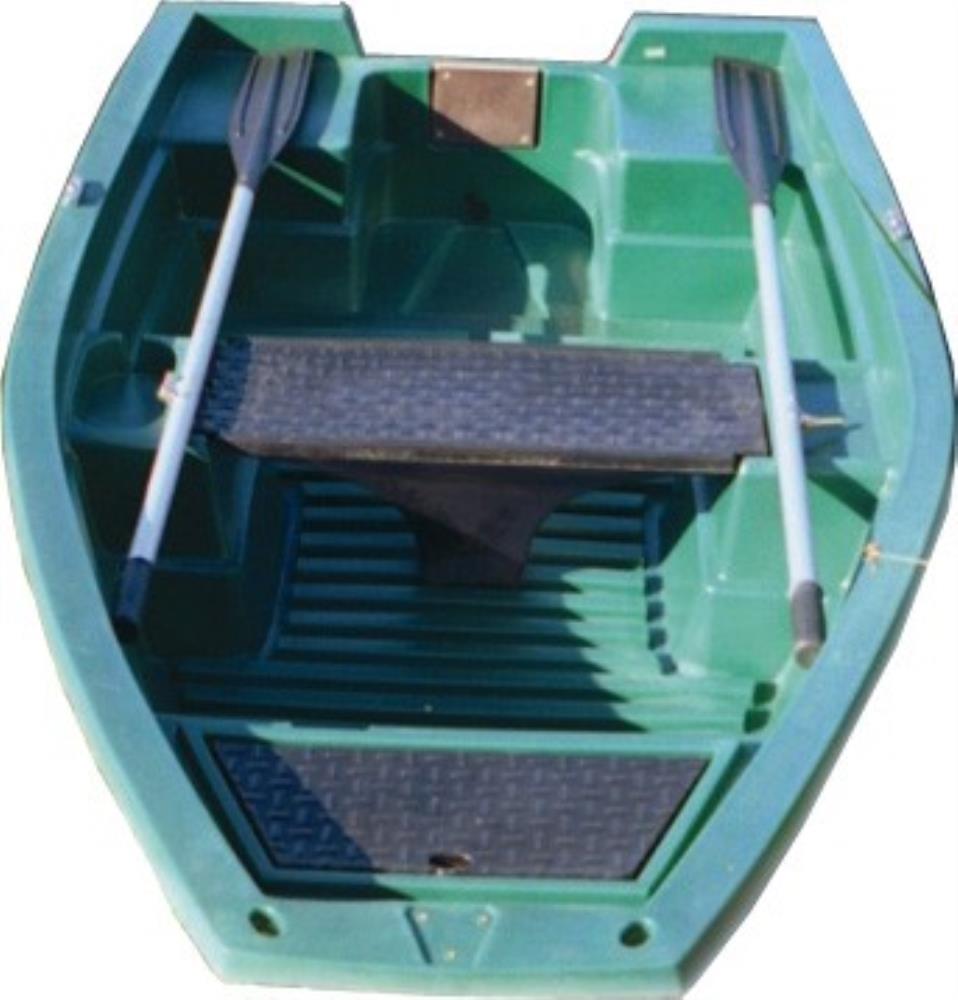 Longueur : 2m48. Largeur : 1m30. Creux : 0m42. Poids : 48 kg. Places : 3. Moteur : 4 cv Max. Coloris : vert ou bleu. Equipements : Coffre AV. Logement boîte à leurres et seau à vifs. Rouleaux de transport. Nable autobloquant. Avirons alu et dames de nage. Anneaux d'amarrage. Support moteur renforcé. Fabriqué en polyéthylène haute densité.