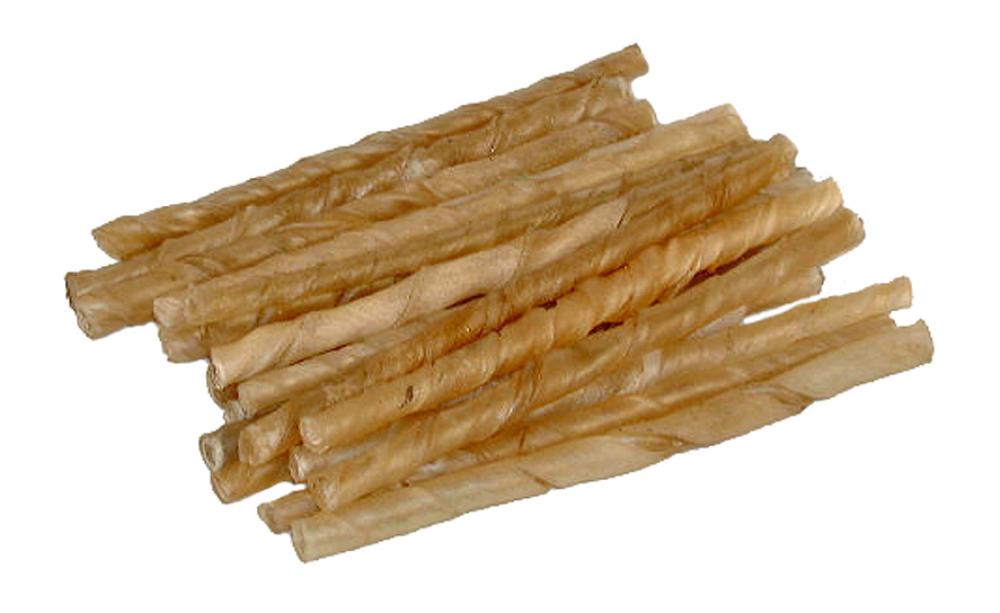 Ces bâtonnets torsadés sont une friandise pour chien qui favorise la mastication et qui permet de nettoyer les dents de l'animal. Le frottement sur les dents élimine la plaque dentaire, limite la formation du tartre et active la micro-circulation sanguine au niveau des gencives. Ces friandises sont adaptées à tous les chiens.