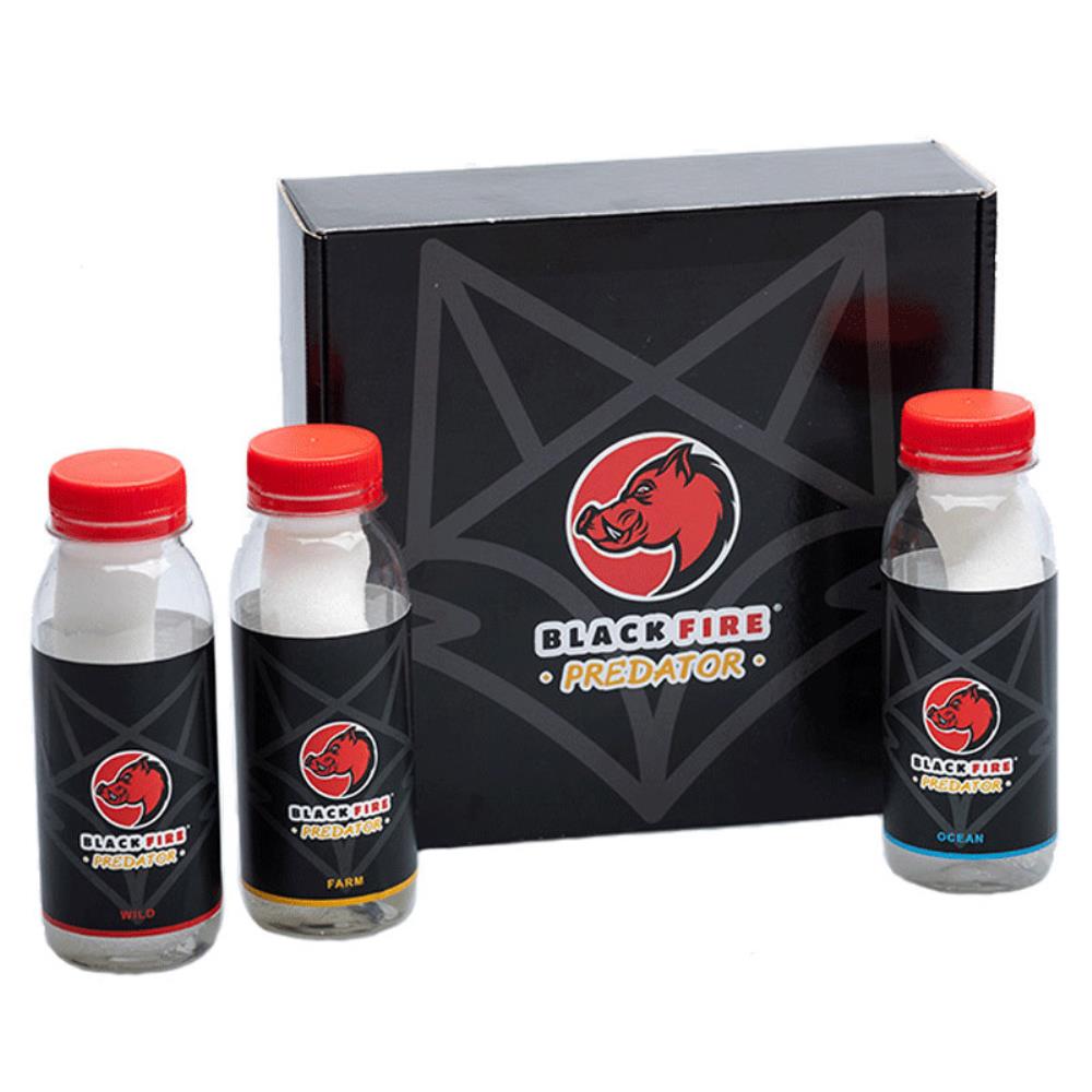 Les appâts Black Fire PREDATOR sont des attractants naturels pour surveiller la présence des prédateurs (renard, raton laveur et autre). L'attractif est muni d'une éponge pouvant servir de goutteur, ainsi le produit reste intense longtemps. Chaque boîte est livrée avec 3 bouteilles, chacune avec une odeur différente pour augmenter vos chances. Il existe deux façons d'utiliser le Black Fire Predator. Méthode de suspension : retirez l'éponge de la bouteille avec le bouchon et suspendez-le à l'arbre. Placez-le aussi haut que possible de façon à ce que les prédateur ne puissent pas l'atteindre. Méthode au sol : Ouvrez le flacon et retirez la moitié de l'éponge avec le bouchon. Placez la bouteille sur le sol à l'endroit où vous souhaitez attirer le prédateur.