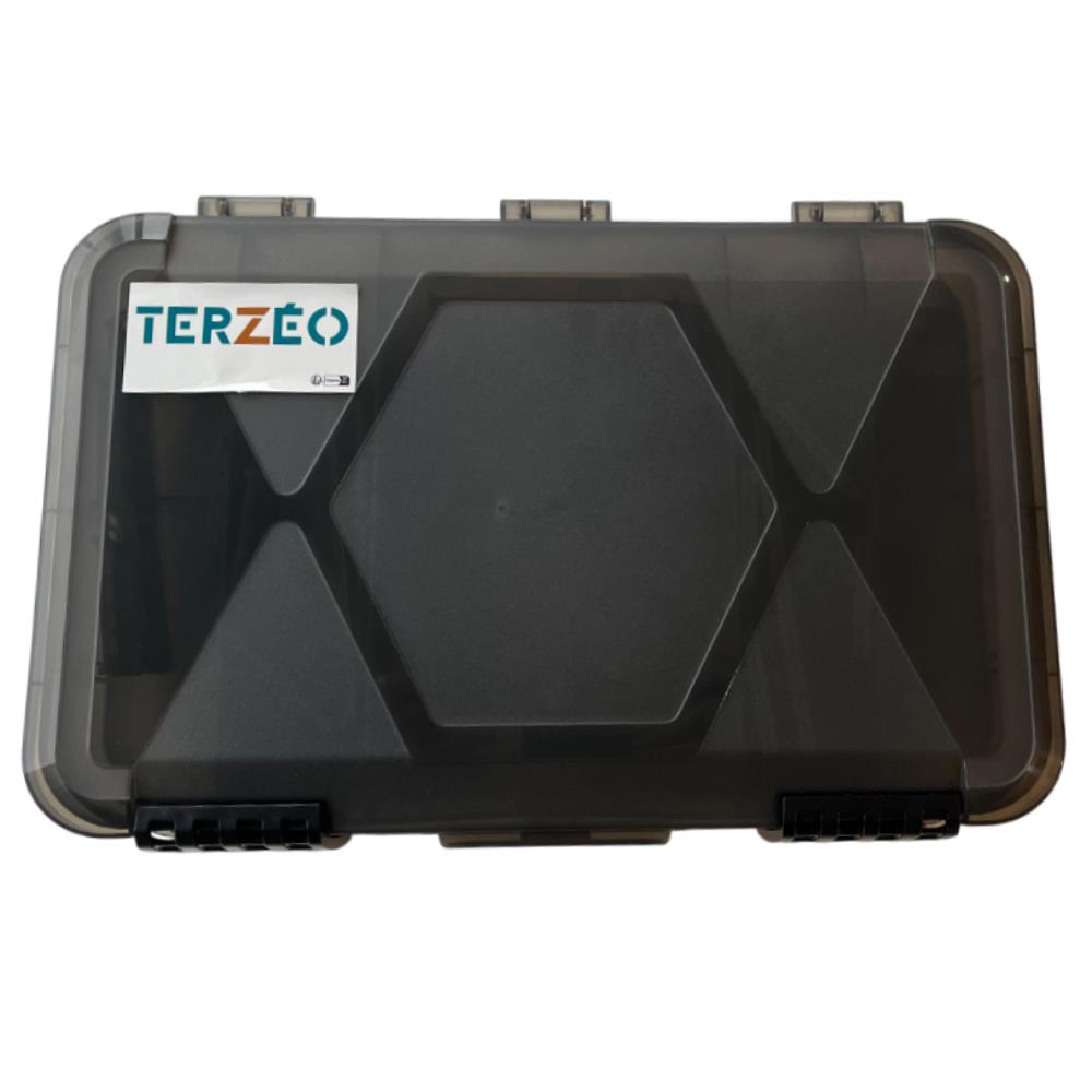Cette belle boite à leurres fumée Terzéo à 2 étages est adaptée au rangement de leurres variés, durs ou souples, avec une grande capacité d'emport.