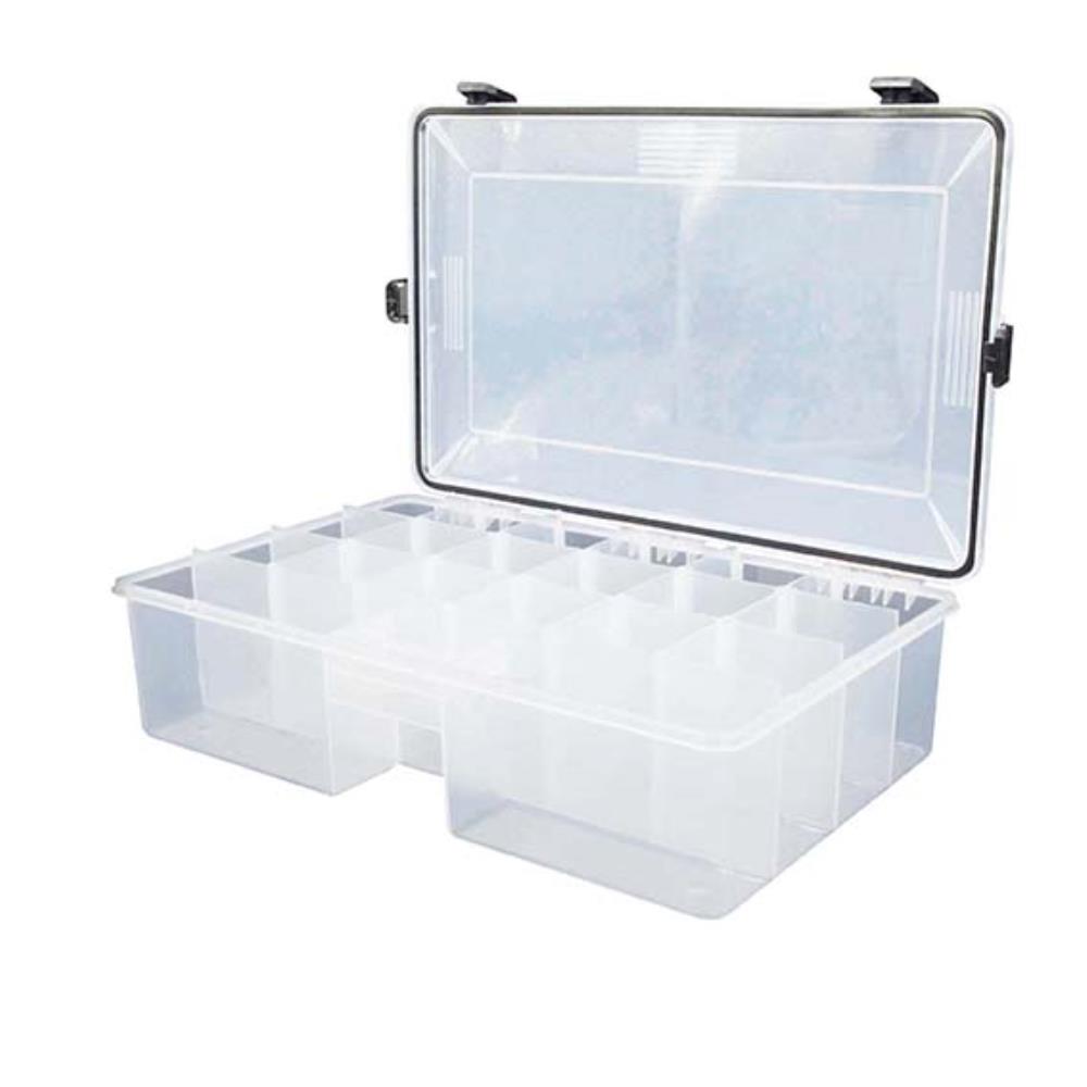 Boîte standard de la marque Scratch Tackle, idéale pour le rangement de vos leurres. Ces boites transparentes sont aussi très résistantes. Les cases à l'interrieur sont modulables afin de s'apadter à vos préférences.
