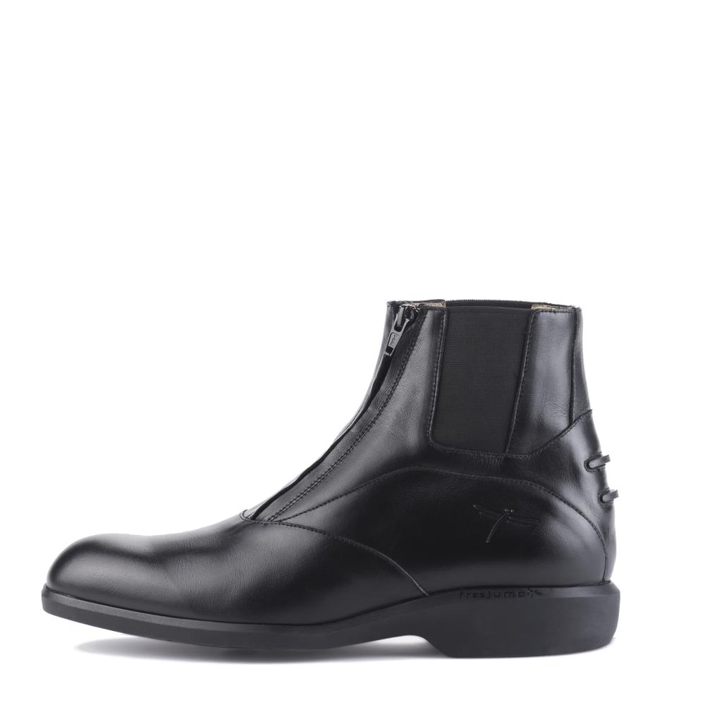Composition: cuir pleine fleur. Semelle injectée en caoutchouc, semelle intérieure Sidas. Coloris: noir. Disponible de la taille 39 au 46. S'adaptent avec la paire de mini-chaps AMERICA. Semelle sidas: cette semelle permet une meilleure répartition de la pression sous la voute plantaire et un meilleur maintien du pied. Pour offrir une durée de vie plus longue à votre paire de boots, nettoyez les avec une éponge humide après chaques séances, et découvrez le Kit Freejump pour nourrir et entretenir le cuir.