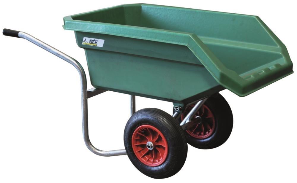 Ces brouettes sont conçues à partir d’un châssis galvanisé à basculement intégral et d’une cuve en résine de polyéthylène stabilisé aux UV et au gel