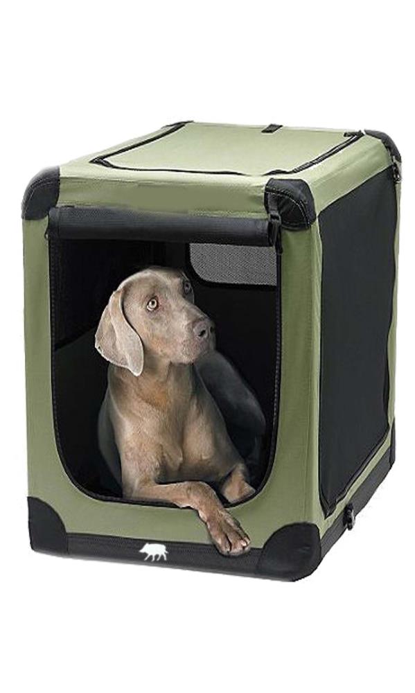 Niche nomade et pliable pour chiens de toutes tailles. La structure est très robuste, en acier, très facile à plier et déplier. Poignée de transport très pratique quand la caisse de transport est pliée.