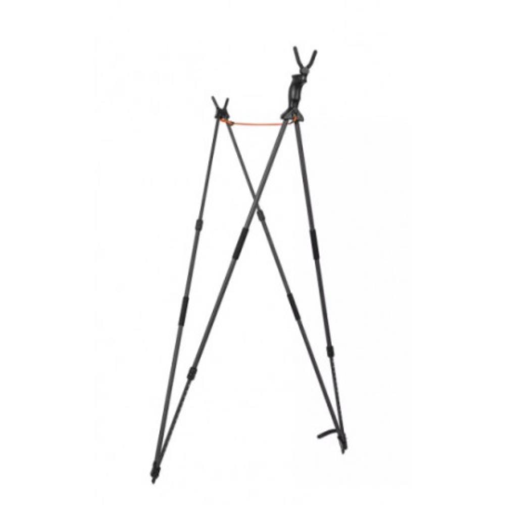 Pensée pour l’usage terrain, la canne intègre des éléments pratiques : fourche avant et pin magnétiques amovibles pour éviter les pertes, système de cordon réglable garantissant un écartement constant des pieds et des serrages élastomères assurant un maintien sûr. Adaptée à la pirsch, à la chasse en montagne et à la battue, elle s’impose comme un accessoire essentiel pour qui cherche un appui fiable, compact et durable.