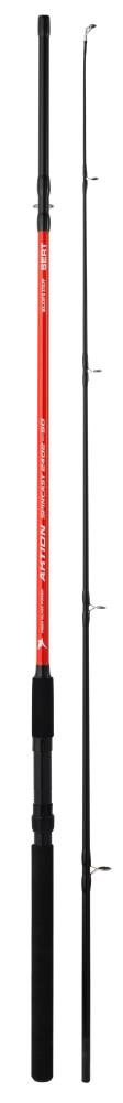 Canne à lancer emmanchement. Longueur : 1,80 m. Composition en fibre de verre "FGC Concept". Pommeau anti choc et poignée EVA. Porte moulinet tubulaire. Anneaux OAL. Moulinet carnassier frein arrière micrométrique. 1 roulement à billes. Bâti et rotor graphite. Anti-retour Multi-stop. Bobine graphite. Capacité : 215 m /0,18 mm. TMV : 0,70 m.
