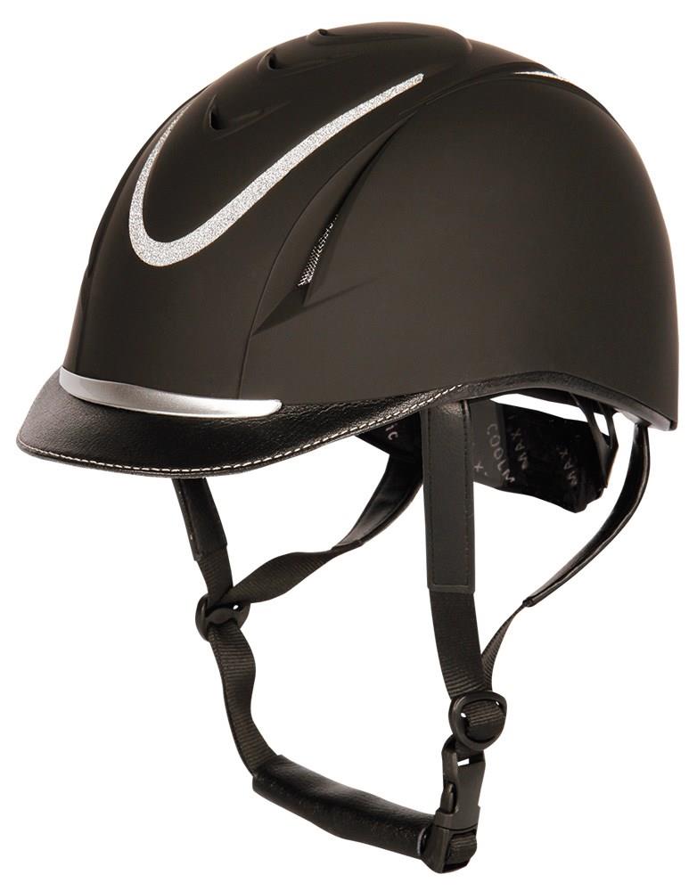 Casque léger et ventilé décoré de strass sur la coque.Le système de réglage de ce casque permet d'ajuster la circonférence et la hauteur de la tête.