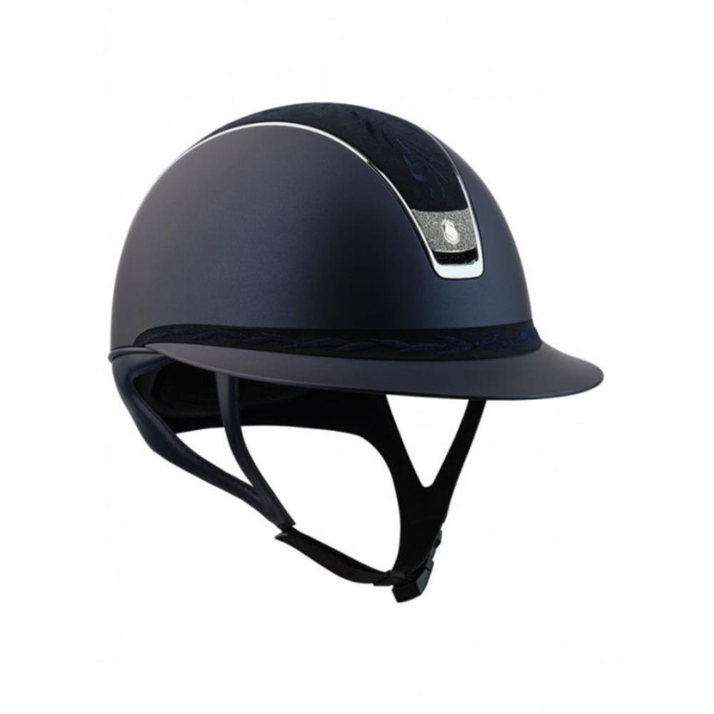 Caractéristiques : longue visière, bande frontale, personnalisable, option jugulaire de dressage.