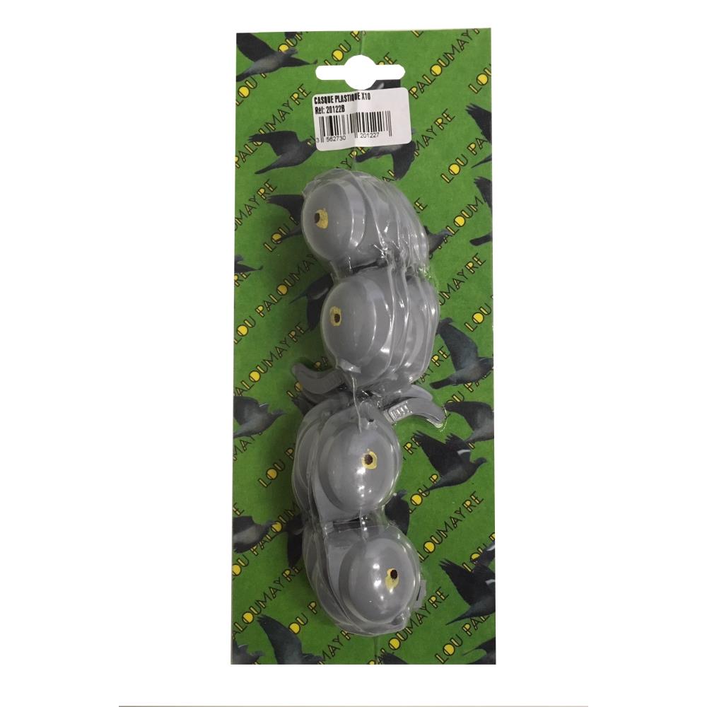 Les casques à palombe en plastique de Lou Paloumayre vous permettront d'atteler vos appelants sans qu'ils soient stressés ou qu'ils prennent peur. Les casques en plastique ne se déforment pas et ne brillent pas pour ne pas effrayer les oiseaux sauvages. Les casques sont réglables afin de pouvoir les ajuster à la morphologie de vos appelants. Les yeux sont peints pour donner un aspect le plus naturel possible.Lire la suite