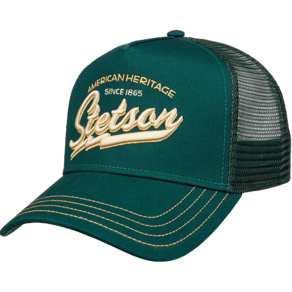 La casquette Trucker Héritage de la marque Stetson est un élément essentiel pour compléter vos tenues. Elle est équipée d'un filet à l'arrière, avec le logo de la marque et des inscriptions en blanc et jaune sur le devant.