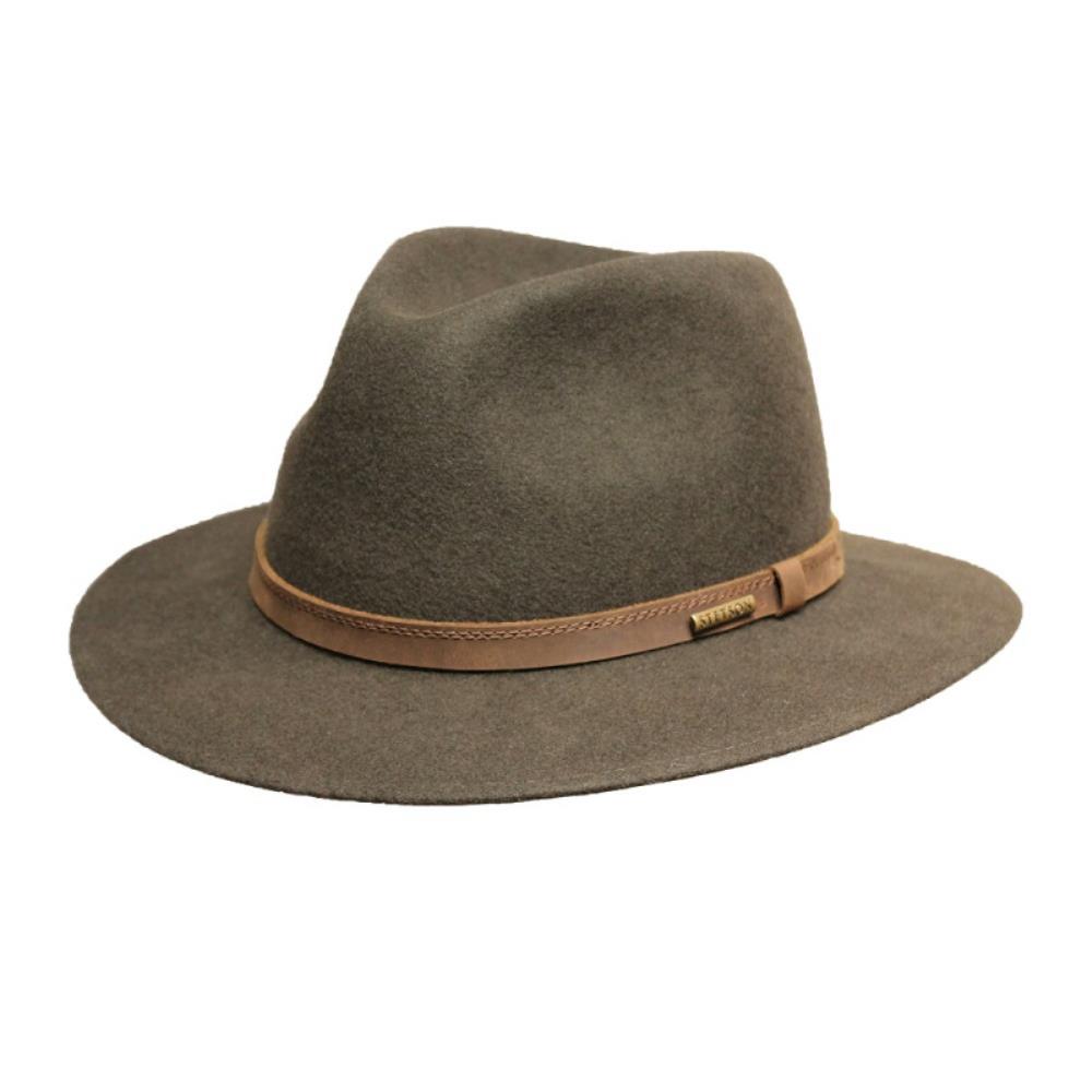 Le chapeau Traveller Woolfelt est un chapeau élégant en laine de coloris kaki de la célèbre marque Stetson. Il est conçu à partir d'une laine feutrée de première qualité, réputée pour son imperméabilité naturelle, vous préservant ainsi des averses inattendues et des rayons du soleil. Il est agrémenté d'une bande en cuir raffinée. Sa silhouette Traveller, à la fois aventurière et chic, se distingue par sa forme confortable et son bord incurvé, mesurant 6,5 cm à l'avant et à l'arrière. Ce chapeau Woolfelt sera l’accessoire idéal pour vos journées de chasse.