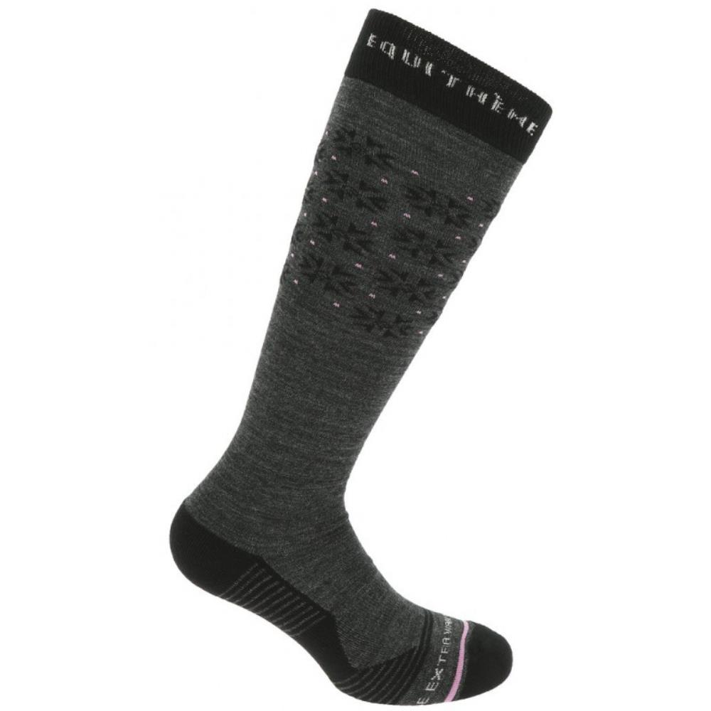 Composition : 49 % acrylique, 31 % laine, 18 % polyamide, 2 % élasthanne. Tailles du 35 au 41. Coloris: gris et rose.
