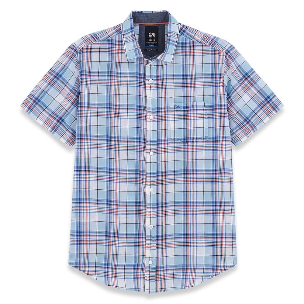 Chemisette boutonnée à grands carreaux exclusifs tbs. Poche et logo poitrine.Lire la suite