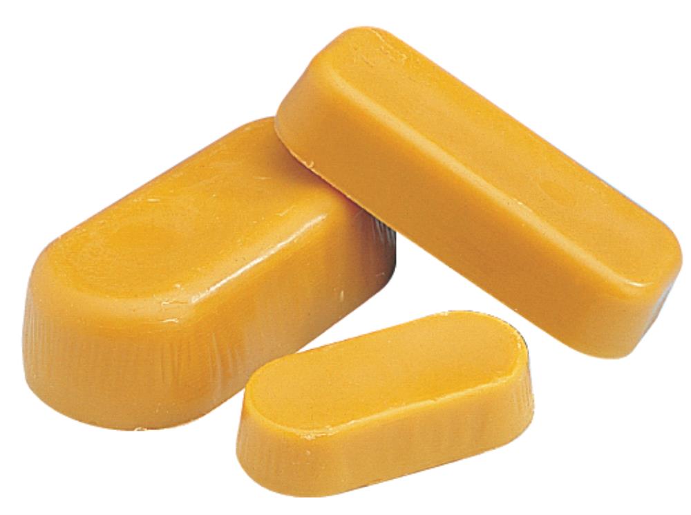 Cire épurée en pain. Pour la fabrication de vos bougies et décors ou une autre utilisation qui demande de la cire propre mais sans nécessité de pains réguliers.