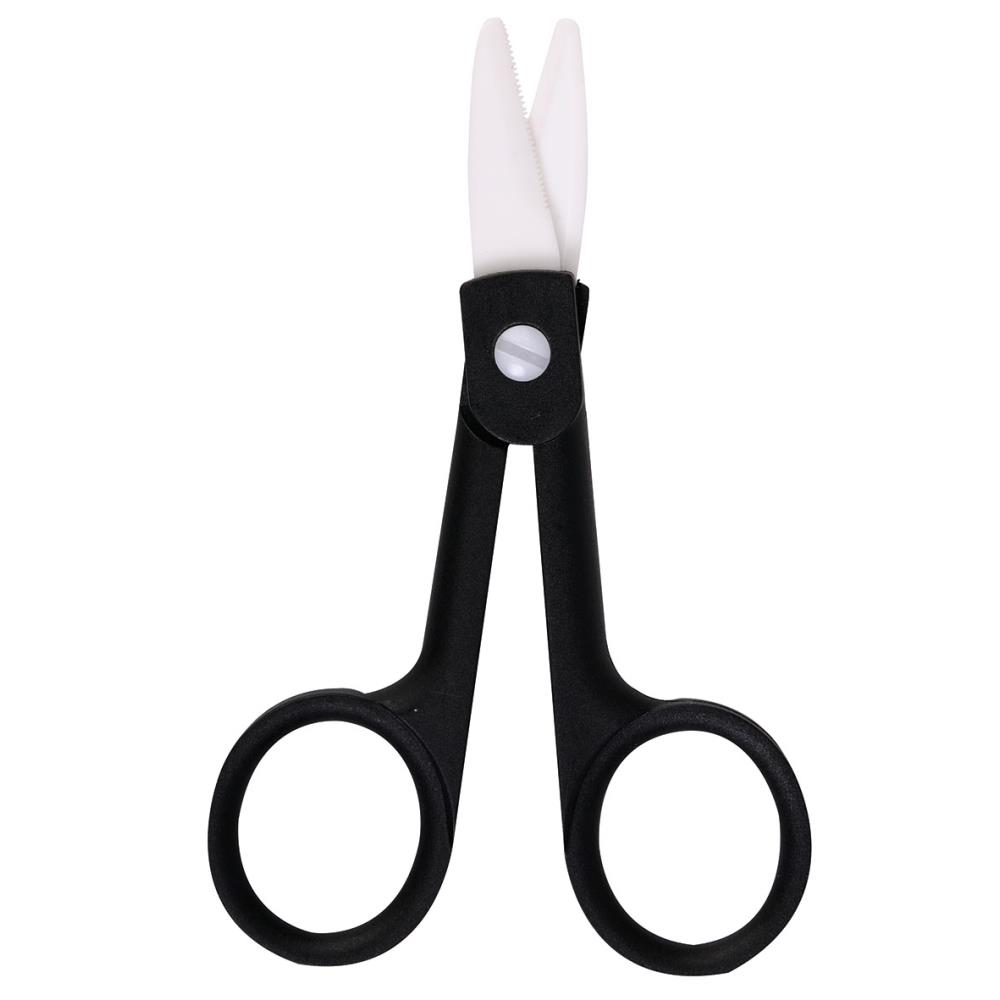 Ciseaux en céramique très résistante et totalement inoxydale. Ses lames micro-dentées empêchent le fil de glisser et garantit la coupe.