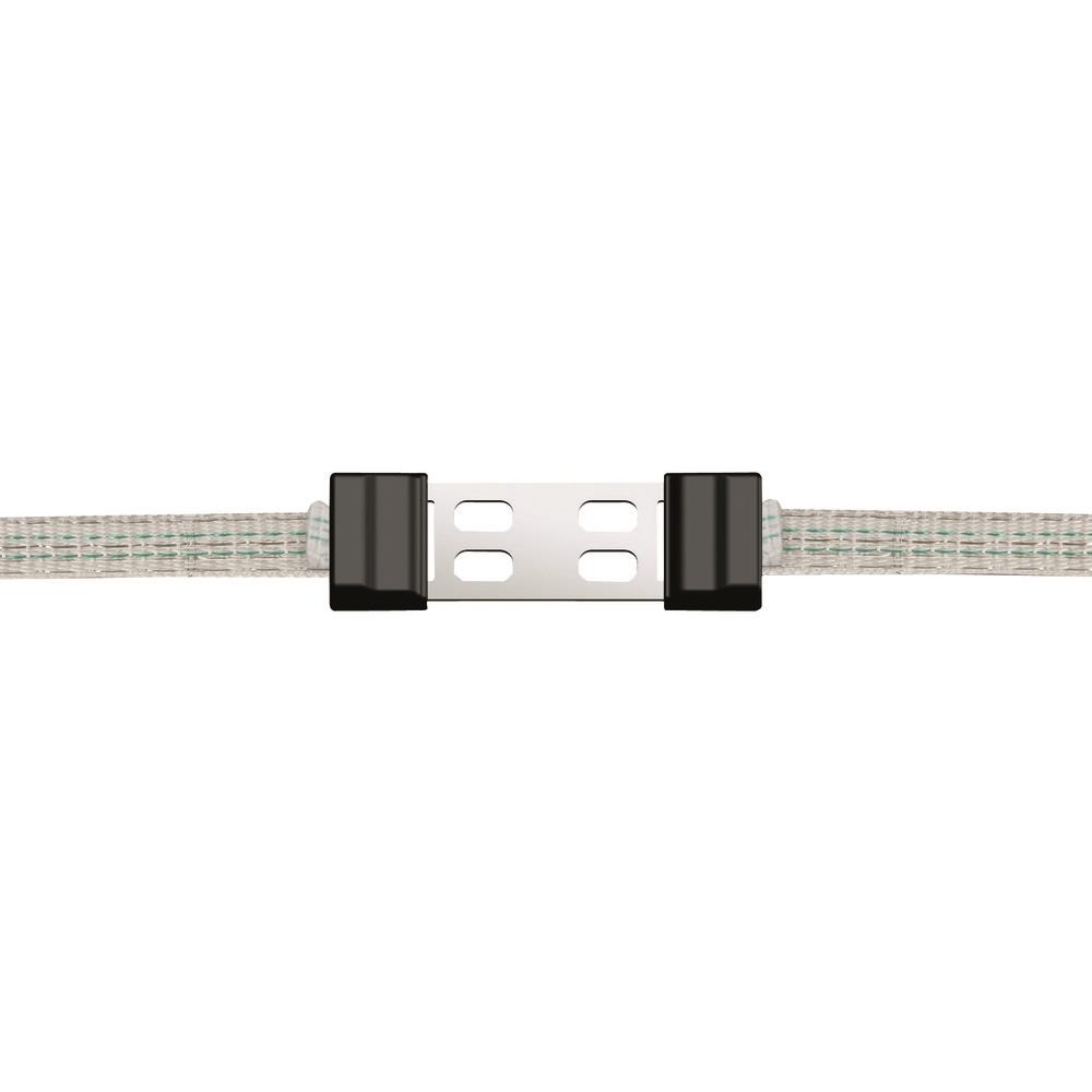 Ce raccord Litzclip® pour ruban permet de raccorder facilement 2 extrémités de ruban sans outil. Il permet de réparer rapidement un ruban de clôture endommagé. Les ouvertures spéciales sont perforées rectangulaires afin d'enfiler et fixer facilement le ruban. Il offre une électrification continue et une connexion sûre.
