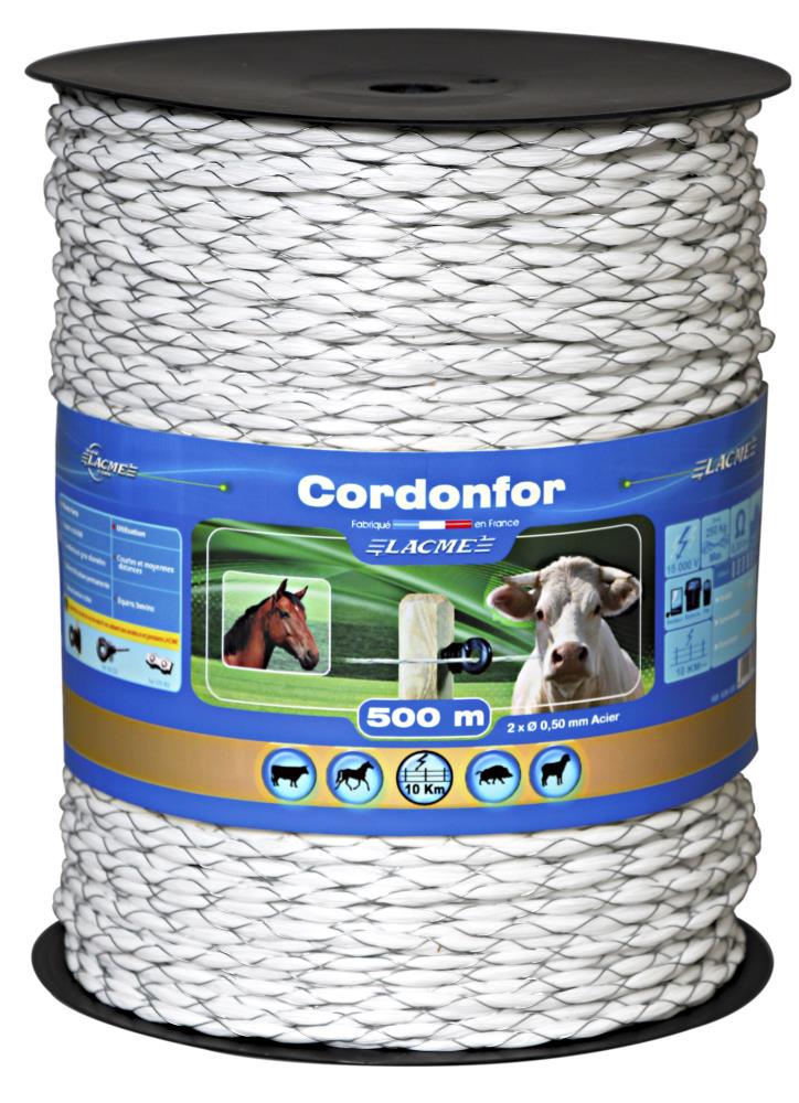 Ce cordon Cordonfor est une cordelette adaptée pour les clôtures semi-permanentes et aux électrificateurs secteur et aux accumulateurs. Cette cordelette possède une grande visibilité, est très robuste, efficace et fiable grâce à une réelectrification permanente. Elle est idéal par exemple pour renforcer la visibilité d'une installation Forceflex.