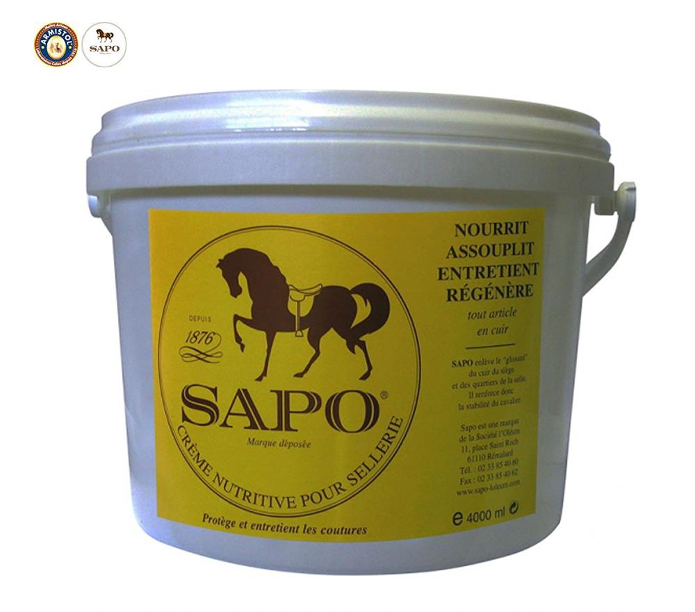 Nourrit, assouplit, régénère les cuirs de sellerie: selle, sangle, bridon, brides, harnais, rênes, gants, bottes, sapo est une excellente graisse à cuir qui empêche la moisissure, protège les coutures.