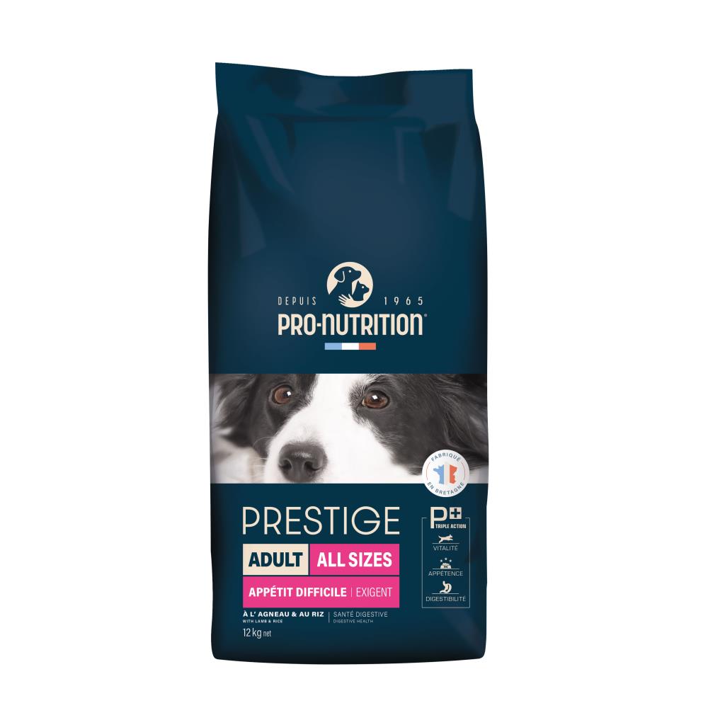 Ces croquettes pour chiens Prestige Adult à l'agneau et au riz de la marque Flatazor sont conçues pour les chiens adultes de toutes les races (beauceron, cavalier king charles, boxer, labrador retriever, berger …). Elles conviennent parfaitement aux chiens sensibles (estomac ou intestin irritable) et permettent de lutter efficacement contre les symptômes liés aux allergies alimentaires. Ces croquettes sont fabriquées avec des ingrédients non allergisants (sans blé, gluten, ni soja) et hyper digestibles (avoine décortiquée, agneau et riz) elles participent au bon fonctionnement de la santé digestive et permettent de limiter les risques d'allergie comme les troubles cutanés et digestifs. L'aliment apporte au chien de la vitalité et une meilleure santé grâce à l'apport équilibré de 40 nutriments essentiels, la protection des vitamines et l'intégration d'antioxydants naturels (polyphénols des fibres de pomme et extraits de romarin). Les croquettes apportent sécurité et confort digestif l'association de probiotiques et de pré biotiques qui favorise et optimisent le développement de la bonne flore intestinale. L'argile et la levure de bière sécurisent le transit digestif en faisant un pansement sur l’estomac et l'artichaut, hépato-protecteur naturel, évite toute surcharge du foie et le nettoie. Les croquettes sont conçues avec des matières premières végétales non OGM et sans colorant. Elles renforcent le système immunitaire et favorisent un poil brillant et une peau saine. L’huile de colza, les graines de lin et les autolysats de poisson sont des sources d’acides gras (oméga-6 et oméga-3) naturels. Votre chien sera plein de vitalité et bénéficiera d’un beau pelage ! Les croquettes animales sont élaborées avec des produits de qualité (viandes, graisses, céréales) pour être des aliments secs « premium » ! Il faut veiller à donner la dose recommandée sur le sachet de croquettes en fonction du poids du chien adulte et de son âge. La ration alimentaire contient les besoins nutritionnels nécessaires à une bonne alimentation équilibrée. L’alimentation sèche est idéale pour faire mâcher le chien, ainsi le tartre ne pourra pas se déposer et son hygiène bucco-dentaire sera meilleure. Vous pouvez également ajouter un peu d’eau sur les croquettes afin de faire une sauce, c’est aussi plus facile à manger pour les jeunes chiens ou les chiens âgés. Si vous entamez une transition alimentaire, veillez à effectuer le changement d’alimentation en douceur. Pensez à toujours laisser une gamelle d’eau à disposition pour votre chien, ainsi il pourra boire en libre-service et s’hydrater comme il faut. Pour les chiens sensibles, n’hésitez pas à demander un avis vétérinaire.