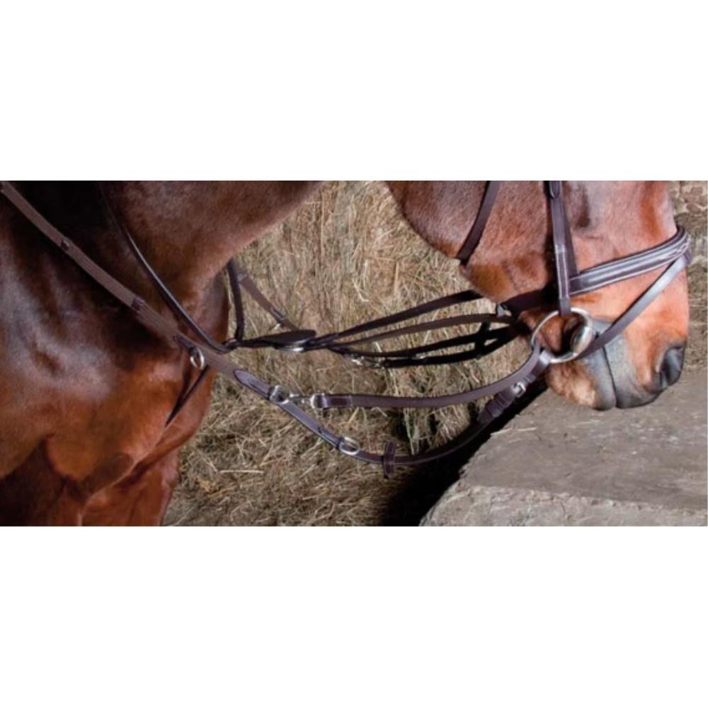 Les enrenements Howlett de T de T offrent un effet similaire aux rênes allemandes, tout en offrant l'avantage pratique de ne nécessiter qu'une seule paire de rênes. Ils visent à corriger une position trop haute ou mal orientée de l'encolure. Ces enrenements sont accompagnés d'une paire de rênes toiles à arrêtoirs spécifiques, dotées d'anneaux en D métalliques (3 sur chaque rêne) permettant d'y attacher l'enrênement. La bouclerie est en inox pour assurer la durabilité et la résistance.Lire la suite