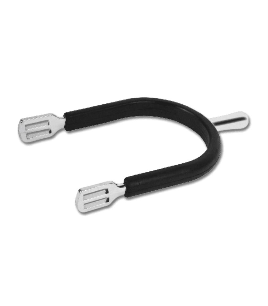 Éperons inoxydable à bouts ronds, avec protection fixe en caoutchouc et lanières en nylon. La protection fixe permet de moins glisser et de moins abîmer les bottes.Lire la suite