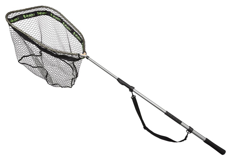 Cette épuisette GUNKI « street fishing concept », parfaite pour le pêcheur à pied (mais pas que!), est réalisée à partir d’un manche aluminium très solide. Elle est équipée d’une sangle épaulière pour pouvoir la transporter. Sa réelle innovation se situe au niveau du manche : les trois parties qui le composent se déploient en une seule manipulation grâce à un système de coulissement intégré au niveau de la poignée, sur le brin intermédiaire. En actionnant ce mécanisme par simple pression sur le bouton de la poignée, et en tirant le brin du talon, vous déplierez tous les brins pour atteindre une longueur totale déployée de 1.20m (sans la tête). Un geste simple, extrêmement rapide et facile à réaliser, qui vous fera gagner un temps considérable, surtout si vous êtes seul!