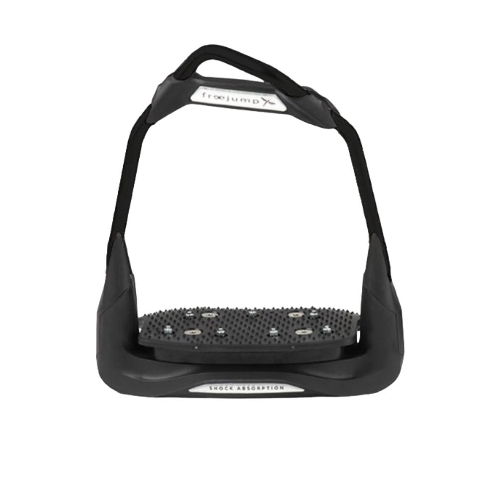 Les étriers air s full black œil droit de Freejump sont dotés d'une armature en acier inoxydable noir et d'un plancher en élastomère, ils offrent une absorption des chocs optimale et un grip exceptionnel.