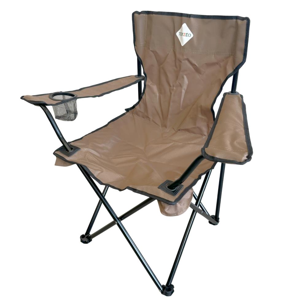 Le fauteuil Terzéo, est un fauteuil pliable avec des accoudoirs. Il possède un porte-verre intégré. Sa conception en nylon polyester enduit en PVC le rend résistant et facilement nettoyable. Ce fauteuil est fourni avec une housse nylon vous permettant de le ranger et de le transporter partout. Il supporte un poids maximal de 100kg.