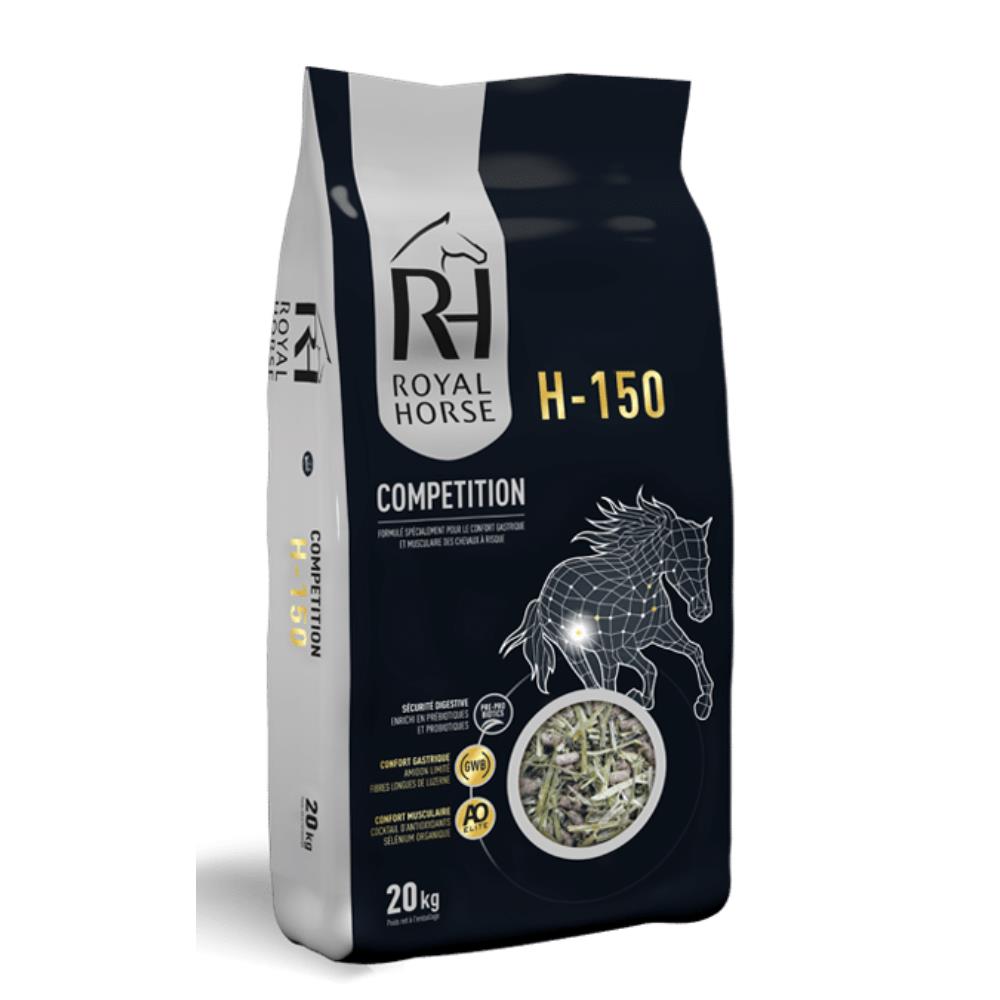 L'aliment H-150 de Royal Horse est un aliment granulé/fibre conçu spécialement pour répondre aux besoins nutritionnels des chevaux de compétition, disponible en sac de 20 kg dans plus de 1000 points de vente à travers la France. Cet aliment complémentaire de fourrages est spécifiquement formulé pour les chevaux réalisant des efforts soutenus et sujets aux dysfonctionnements musculaires et/ou gastriques. Voici quelques points clés de sa composition et de ses avantages : Quantité d'amidon limitée (10%) : Cela aide à contrôler les risques liés à une consommation excessive d'amidon, ce qui est particulièrement important pour les chevaux sujets aux troubles digestifs. Supplémenté en prébiotiques et probiotiques (MOS et levures vivantes) : Ces composants favorisent une flore intestinale saine, contribuant ainsi à une meilleure santé digestive et à un transit optimal. Présence de GWB (principe actif à base d'extraits de végétaux) : Il soutient le confort gastrique, réduisant ainsi les risques de troubles gastro-intestinaux. Contient AO Elite (un complexe d'antioxydants végétaux) : Ce complexe aide à réduire les effets de l'oxydation, soutient l'effort musculaire et facilite la récupération, notamment dans des situations de stress. Supplémenté en oméga 3 : Respectant un rapport optimal oméga 6/oméga 3, cela favorise l'utilisation de l'énergie alternative apportée par un taux élevé de matières grasses végétales. Supplémenté en L-carnitine : Cet élément favorise l'utilisation des composés énergétiques provenant des matières grasses, aidant ainsi à soutenir les efforts musculaires. Les ingrédients incluent des fibres de luzerne en brins longs, des granulés composés de divers éléments tels que le son de blé, la luzerne déshydratée, des produits cellulosiques, du lin extrudé, de l'avoine, des graines de soja toastées, de la mélasse, de l'orge, de l'huile végétale, des minéraux, des oligo-éléments, des vitamines, des levures vivantes, des Mannan oligosaccharides (MOS) et des extraits de plantes (AO Elite – GWB). La gamme "Compétition" de Royal Horse vise à soutenir les besoins énergétiques élevés des chevaux en compétition, en fournissant des solutions nutritionnelles de haute qualité pour soutenir les efforts musculaires intenses et faciliter la récupération.