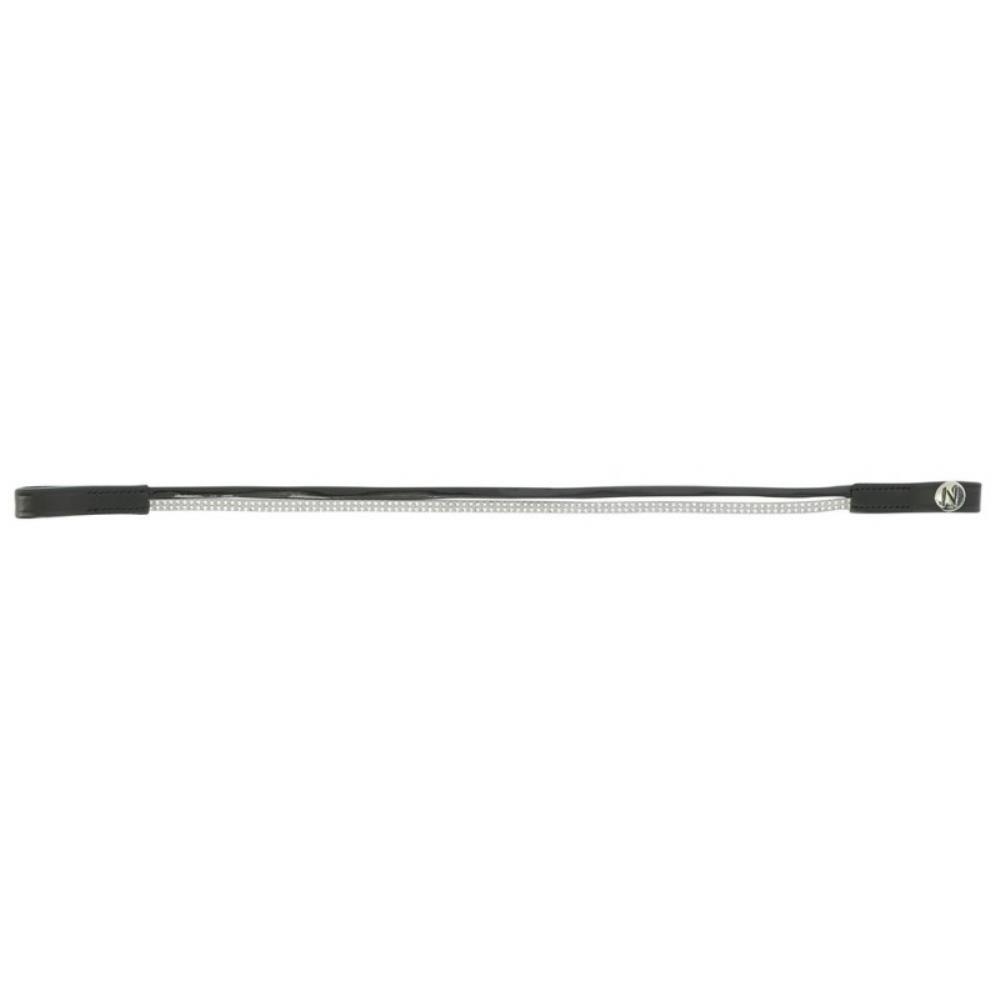 Composition: Frontal en cuir de buffle avec deux lanières : une en polyuréthane aspect cuir vernis et une en polyester ornée de petits clous brillants. Coutures noires pour cuir noir. Taille unique cheval.