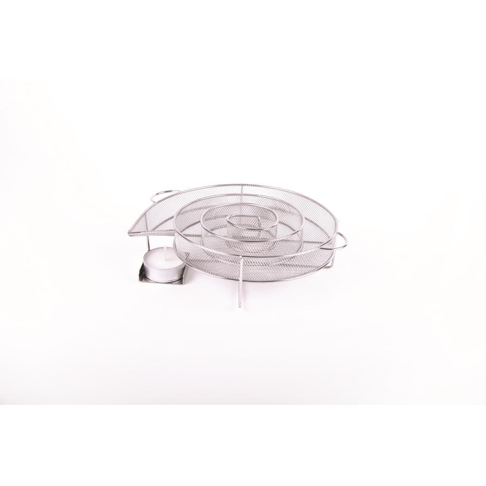 Composition : acier inoxydable. Réceptacle à bougie. Fonctionne avec de la sciure de bois.