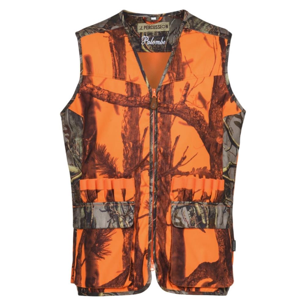 Le gilet Palombe Ghostcamo bi-colore de la marque Percussion est un gilet sans manches arborant un camouflage forêt orange. Fabriqué à partir de polyester à 100%, il est traité déperlant. Sa doublure en filet polyester garantit plus de respirabilité, vous gardant au frais et à l'aise pendant vos longues journées de chasse. Avec ses deux grandes poches basses à fermeture à pression et ses cartouchières extérieures pouvant accueillir jusqu'à 12 tubes, vous avez tout l'espace nécessaire pour ranger vos munitions et vos accessoires essentiels. À l'intérieur, vous trouverez deux poches pratiques pour ranger vos effets personnels en toute sécurité. De plus, l'anneau porte-gibier et le carnier avec doublure étanche et lavable vous permettent de transporter le gibier sans souci. Le gilet Palombe est spécialement conçu pour la chasse en début de saison, offrant à la fois style, confort et fonctionnalité.