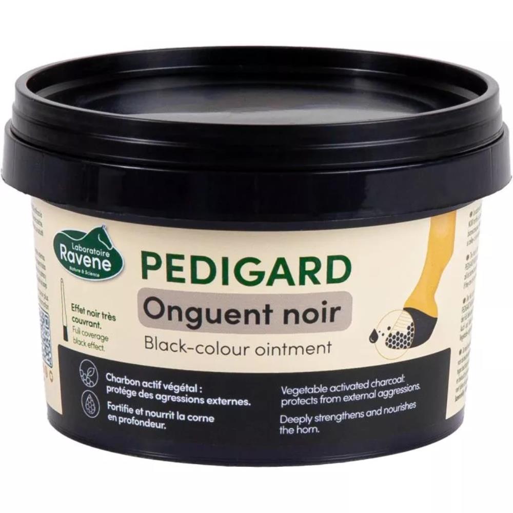 L'onguent noir Pédiguard de Ravene est idéal pour entretenir et protéger les sabots de votre cheval, en les rendant plus résistants tout en maintenant leur flexibilité et leur santé.