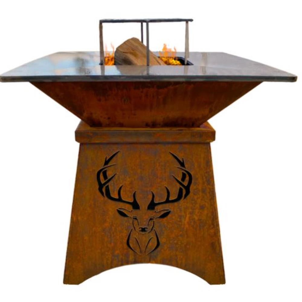 GRAND BRASERO BBQ CORTEN MOTIF TETE DE CERF