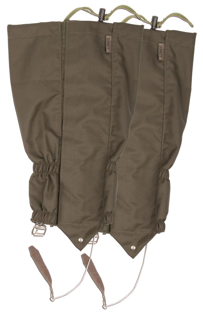 Guêtres en tissu souple. Anti-ronce, imperméable, câble métal, crochet de maintien. Serrage à lacet réglable.