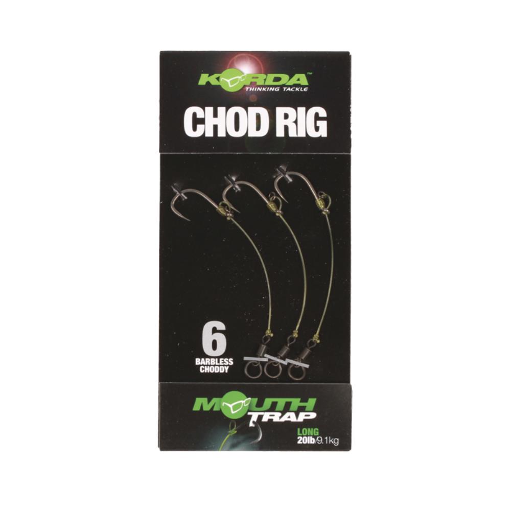 Les fameux Chod Rig prêts à l’emploi. Ils sont disponibles en deux tailles, « longs » et « courts », et sont montés sur du Mouth Trap avec un hameçon Choddy.