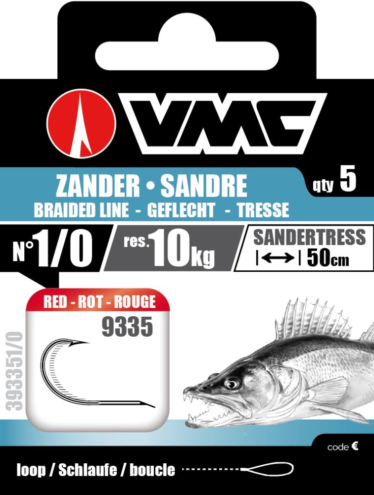 Bas de ligne en tresse avec hameçon 9335 VMC spécial Sandre.