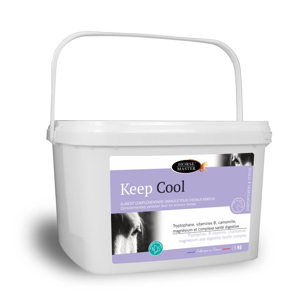Keep Cool est un aliment complémentaire en granulés formulé pour aider les chevaux anxieux, nerveux ou stressés. Sa formule associe une teneur élevée en tryptophane à du magnésium, de la camomille et des vitamines du groupe B pour soutenir le système nerveux et favoriser le calme mental, sans altérer les capacités sportives du cheval. Elle intègre aussi un complexe digestif à base de levure de bière, d’argile et de pulpe de chicorée pour accompagner le bien-être intestinal.