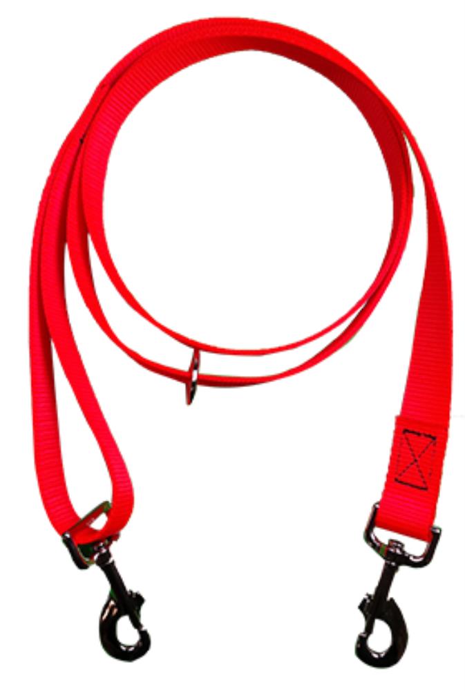 Longueur : 1,80 m. 2 mousquetons. 1 anneau baladeur. Matière : nylon. Couleur : orange.