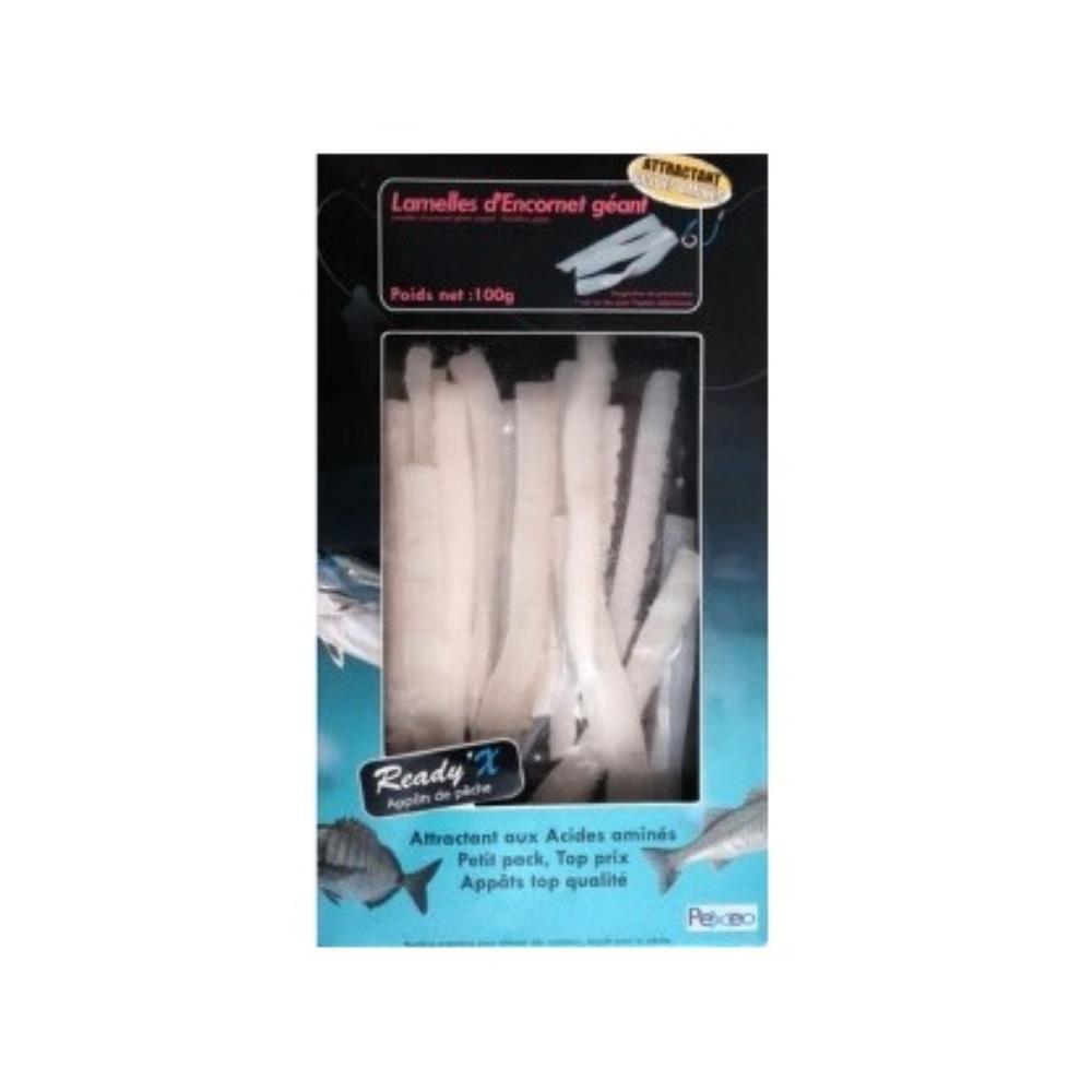 Ces morceaux de calamar nettoyés permettent de prendre tous types de poissons, de la girelle au maigre en passant par bars et sars. Il suffit de recouper les lamelles d'une taille adaptée à l'espèce visée et à la taille de l'hameçon utilisé.